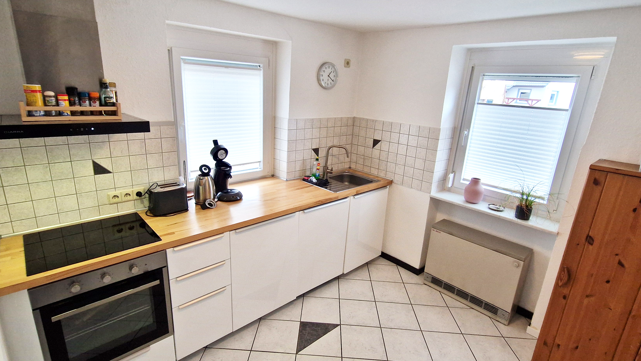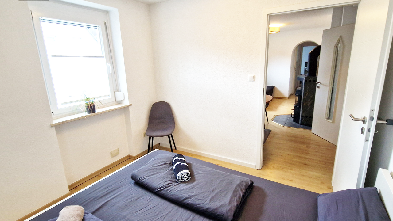 Die Wohnung befindet sich im Erdgeschoss eines charmanten Zweifamilienhauses, und die Gäste betreten sie durch einen privaten Eingang. Ein Flur führt zu allen Räumen dieser geräumigen Wohnung, die über 70 m² Wohnfläche bietet. Zu den Highlights gehören eine große Küche und ein großzügiges Wohnzimmer, das nahtlos mit den beiden Schlafzimmern verbunden ist und ausreichend Platz zum Entspannen bietet.